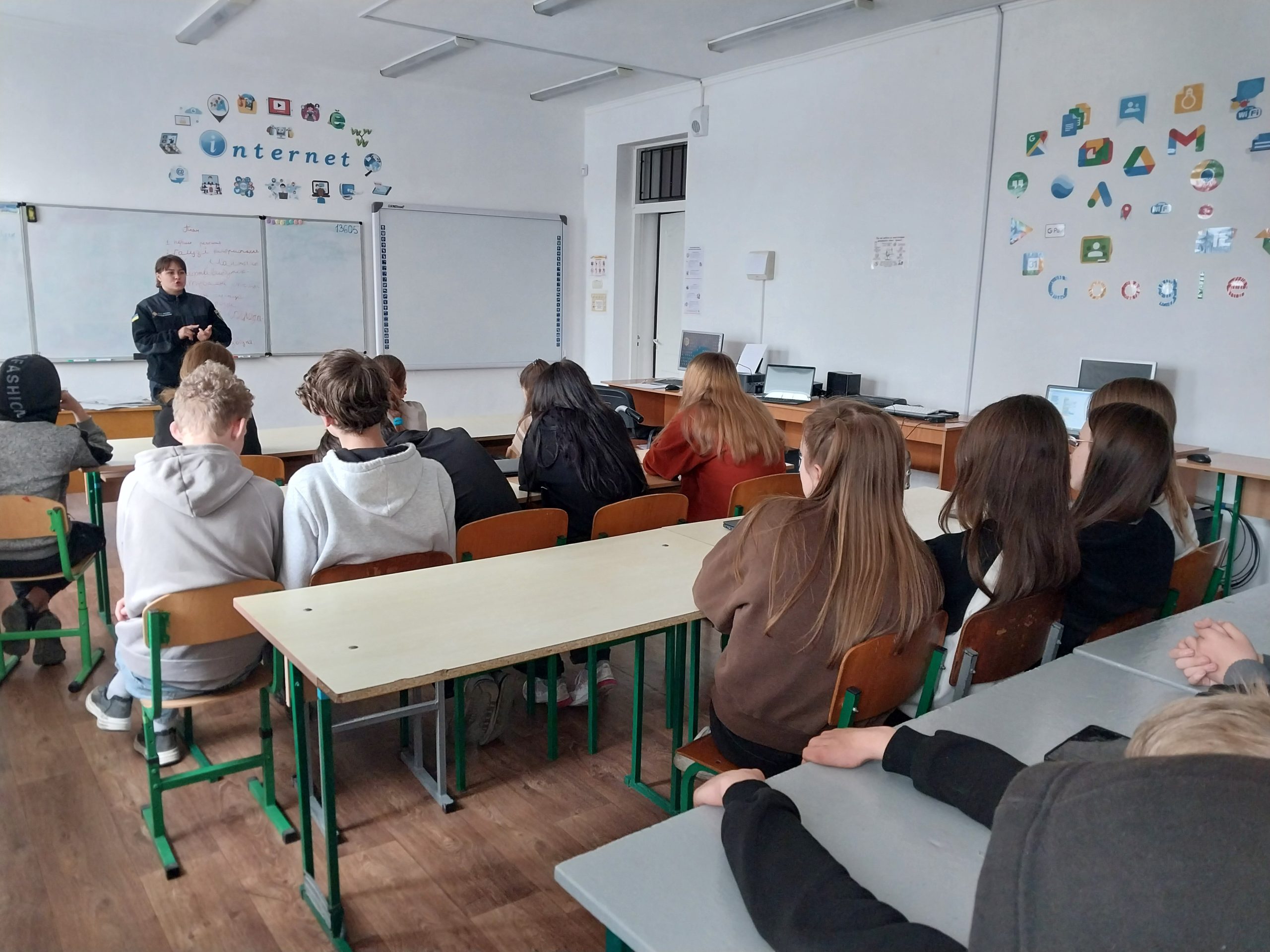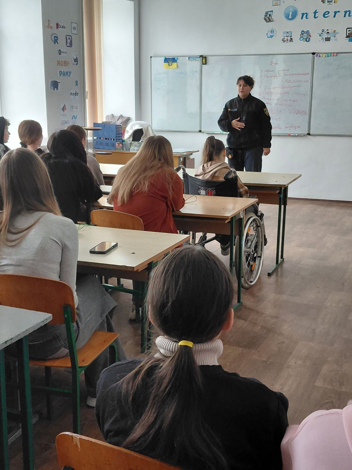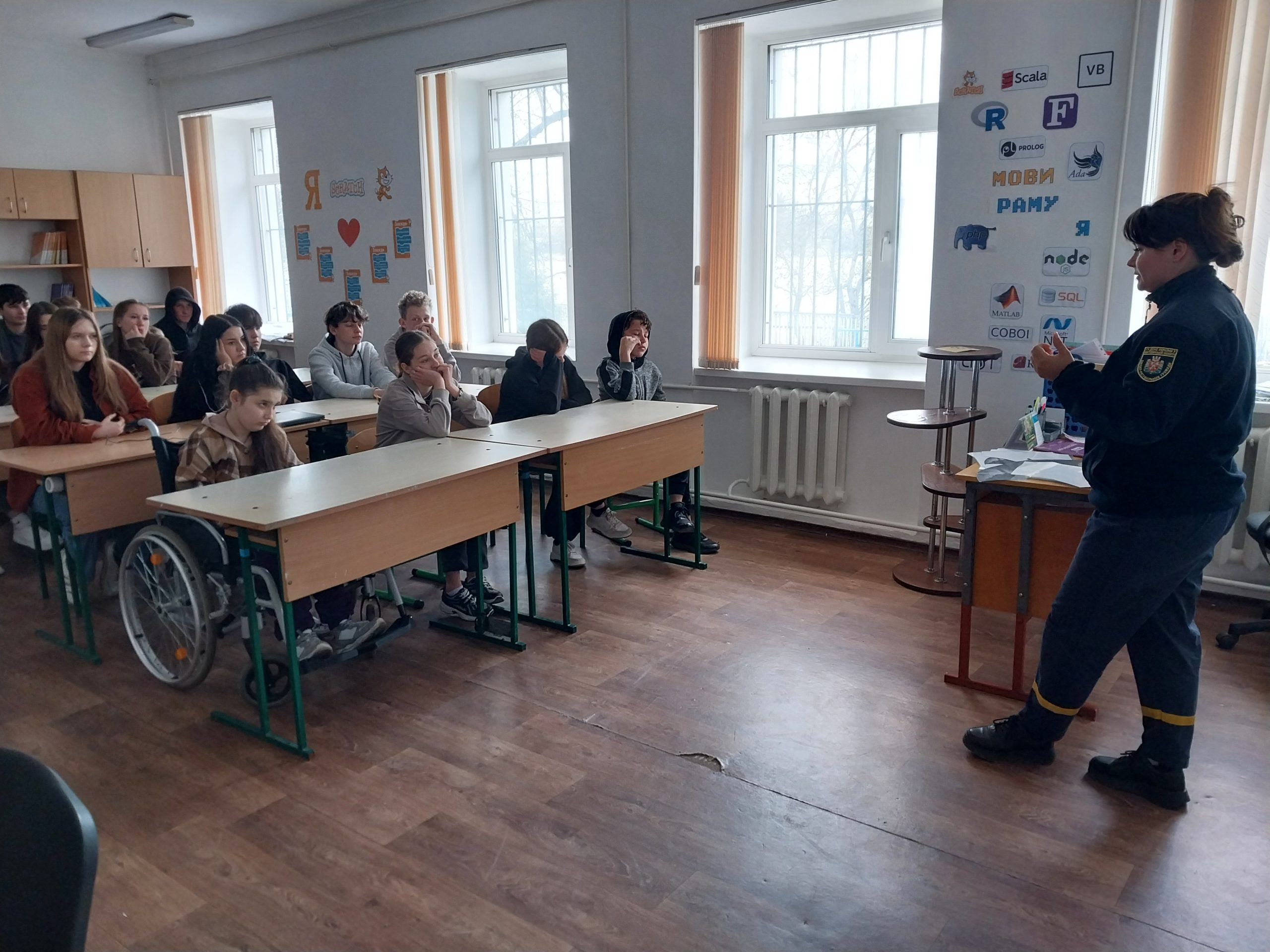 У гімназії відбулася зустріч учнів 9 класу з Кольнобрицькою Валерією Андріївна, провідним інспектором сектору номер 3 Бердичівського РУЦЗ та ПД ГУДСНС у Житомирській обл. Старший лейтенант провела профорієнтаційну бесіду “Можливості вступу до закладів вищої освіти з специфічними умовами навчання, які належать до сфери управління ДСНС України у 2026 році, а саме: до Вінницького ліцею безпекового спрямування та національно патріотичного виховання Львівського державного університету”.
